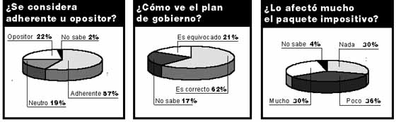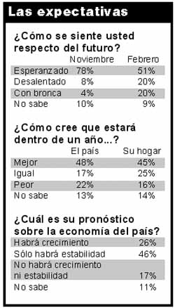 Las conclusiones surgen del relevamiento que Haime realizó durante el fin de semana pasado en Capital Federal y Gran Buenos Aires, sobre la base de 400 personas encuestadas. En el estudio se respetaron las proporciones por edad, sexo y nivel económico-social.“Los números muestran que la gente está esperanzada”, señala Haime. “Quiere que al Gobierno le vaya bien. Le tiene confianza. Yo diría que el Presidente tiene tal vez un margen de siete u ocho meses en que la gente va a mantener su expectativa. Después ocuparán el centro de la escena los resultados concretos que se hayan conseguido. Y aquí hay que poner atención, porque cuando les pregunta a los encuestados por las cosas más concretas, esos ciudadanos no encuentran demasiadas razones para las expectativas. De manera que diría que por ahora existe un clima de confianza, un clima de cierto optimismo, más que razones concretas”.–Mirando las expectativas que había en noviembre, antes de la asunción, y las que hay ahora, parece haber igualmente un deterioro.–Yo tengo evaluadas las expectativas que hubo en época de Alfonsín, en el primer gobierno de Menem, en el segundo y las que existen ahora. Veo que hay una expectativa sustentada en un cambio de estilo político y la esperanza del combate contra la corrupción y la desocupación. Por ejemplo, las acciones realizadas en relación al PAMI son positivamente evaluadas. Por supuesto que hay gente, un 30 por ciento, que se sintió afectada por el ajuste fiscal y no dudo de que querrían más efectividad en las denuncias de corrupción. Eso es lo que redujo en algo las expectativas, que de todas maneras son muy fuertes.Las opiniones positivas respecto de De la Rúa y Ruckauf son la expresión de esa expectativa. Ambos tienen menos del 10 por ciento de imagen negativa, o sea que son pocos, muy pocos, los que opinan mal de ellos. Ese capital es el que tienen en este momento: dentro de unos meses -.siete u ocho, evalúa Haime.- empezarán las ansiedades y los enojos. Algunas encuestados, por ejemplo, ya están disconformes porque no hay personas detenidas a raíz de las denuncias por corrupción, pero todo indica que el peso mayor de las evaluaciones vendrá por el lado económico, particularmente en lo que respecta a si baja o no la desocupación, si hay crecimiento y si se mantiene la estabilidad. Más del 80 por ciento de los consultados dice que la paridad un peso un dólar no debe modificarse. El acuerdo con el estilo austero de conducción se verifica fuertemente con el ascenso en la imagen de Carlos “Chacho” Alvarez, el político que mayor crecimiento tuvo en opiniones positivas. El vicepresidente tenía fuerte imagen negativa producto de que los peronistas lo miraban con malos ojos porque abandonó ese movimiento y a los radicales tampoco les gustaba porque era de origen peronista. Alvarez parece haber remontado la cuesta. También Alfonsín y Fernández Meijide vienen con tendencia ascendente: el ex presidente mejoró después del accidente, la ministra empezó a revertir la situación desfavorable en la que quedó después de perder la elección bonaerense. A dos meses de haber asumido, en la Casa Rosada pueden decir que la luna de miel no se terminó. En las cosas concretas, los encuestados ya empiezan a sentir algunas disconformidades, pero el estilo gusta y el crédito se mantiene abierto. Eso sí: en la población no hay grandes franjas que se llenen la boca de elogios, y con los meses la gente se pondrá más exigente y menos tolerante. Entonces mirarán de cerca los resultados palpables de la gestión aliancista.