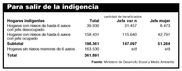 indigentes, unos 460 mil, tiene niños menores de 6 años. La ayuda del