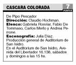 Por Inés Tenewicki La obra es ciertamente naïf y deliberadamente ingenua. Aspira a explotar el lenguaje teatral para contar un cuento simple, pero cerrado y bien resuelto. No tiene más pretensiones –ni menos– que contarlo bien: para eso apela a buenas interpretaciones, excelente manejo de títeres y muñecos –a cargo de Carlos Martínez, titiritero autor de El molinete e Historias del espejo–, y una escenografía, responsabilidad de Julia Díaz, llena de detalles y sugerencias que configuran la identidad de la antigua vida campestre. El resultado es una entretenida comedia especialmente apropiada para chicos de 5 o 6 años (esto no excluye otras edades) acompañados por algún adulto que no saldrá, a pesar de algunos momentos iniciales que transcurren con cierta lentitud, ni aburrido ni defraudado.Pipo Pescador, autor del libro y de las canciones, se limita a aparecer en el escenario como narrador, destacando en palabras lo que luego contarán con acciones los personajes. Su intervención en la obra es notoriamente menos protagónica que en sus trabajos anteriores, respondiendo quizás a una exigencia de la dirección para hacer del espectáculo un producto más teatral, sin las características de show musical que cultivó desde la década del 70 el cantautor responsable del clásico “En el auto de papá”. En este sentido, actores y títeres de Cáscara colorada comparten equilibradamente el estrellato, mientras que el juglar se reserva el lugar del cuentacuentos al comienzo y final de cada escena. Los personajes humanos, definidos y aprehensibles para los niños, son el viejo Don Ramiro, fabricante del disputado queso Mar del Plata de cáscara colorada; su nieta Celeste, que se ocupa de él y de las tareas domésticas, la también vieja vecina Gertrudis, y el enamorado de Celeste, Apolinario. Los animales-títeres que completan el universo de esta historia son los cuatro ratones aspirantes al queso, que aparecen como multiplicados por todo el escenario, dando la impresión de ser muchos más de los que son, el pajarito del reloj cucú y la vaca Sinforosa, impactante muñeco que sorprende por su tamaño y certeros movimientos. La pelea por el queso dará lugar a una sucesión de tretas urdidas por los ratones que, a la manera de chicos traviesos, elucubran la mejor manera de apropiarse del exquisito Mar del Plata. En el final, previsible pero esperado, se hace justicia y los roedores son desalojados de la vieja casona. Una serie de enredos enhebrados entre sí por las letras de las canciones le dan ritmo a la historia, que en ningún momento abandona la gracia y el humor. Con este estreno, Enrique Fisher continúa con el ritmo de temporada que había reiniciado el año pasado, con Viva el teatro,también dirigido por Claudio Hochman y que sigue en pie en el Auditorium de San Isidro a las 17 horas.