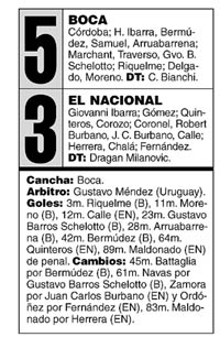 No hubo más partido. En el vestuario se acordaron que el domingo hay que jugar con River por el Clausura y luego, en los miércoles sucesivos, otros dos clásicos, si esta noche los de Gallego no sufren la mayor tragedia futbolera de su historia. Entonces se bajó el ritmo, se cuidó el aire y las piernas y el juego se fue a pique. Hasta un inesperado corte de luz sumó aburrimiento a una noche que había terminado mucho antes. El descuento no hizo ni cosquillas a Boca que siguió manejando el partido a voluntad pero sin buscar aumentar la ventaja. El penal de Maldonado sobre la hora fue un premio excesivo para El Nacional.