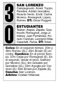 El primer tiempo se puede sintetizar en muy pocos conceptos: San Lorenzo quiso; Estudiantes, no; Romagnoli hizo todo lo que quiso, bien –excepto la última habilitación, apenas larga, del período– y el resto hizo lo que pudo, regular. Y una idea más: si Ariel López hubiese existido o si Romeo hubiera tenido la mínima serenidad o lucidez para aprovechar las dos habilitaciones francas que le hizo el diez petiso del equipo de Ruggeri, San Lorenzo se hubiese ido ganador a los vestuarios. El “mereciómetro” indica esto. Pero hubo también otras circunstancias.Las otras circunstancias fueron dos en la otra área y con los mismos protagonistas: un cabezazo de Casartelli, habilitado por otro cabezazo de Quatrocchi, que se fue apenitas por arriba con Campagnuolo mirando; y una extraña incidencia en el minuto final cuando, a espaldas del árbitro, el arquero de San Lorenzo decidió por las suyas que el delantero de Estudiantes lo había obstaculizado y, después de soltar la pelota, le cometió foul. El lejano y dubitativo Villarreal tocó pito y fue a ver qué pasaba... Pareció que daría penal pero optó por la obstrucción que no había visto. Eso fue todo. Cuando volvieron, Ruggeri lo puso a Estévez por Moreno y enseguida a Grisales por Adrián González buscando profundidad. Estudiantes no se dio por aludido y siguió en lo mismo, cada vez más atrás, pero con Quatrocchi cabeceando en las dos áreas y con el trabajo de Alayes y Zapata a destajo. Hubo un penal clarísimo de Zapata a Romeo a los 11 que Villarreal no vio y la cancha que cada vez se inclinaba más hacia Tauber. Hasta que a los veinte, en la primera aparición de Grisales, hizo la pared larga por derecha y tiró el centro al primer palo que, en su única llegada oportuna y a tiempo, Romeo convirtió en golazo. Y en los minutos siguientes, ante el adelantamiento previsible de Estudiantes –ya con Agoglia en la cancha– San Lorenzo lo pudo definir. Hubo dos, tres contragolpes que quedaron en la nada por demoras en los pases, por offside, por tapada de Tauber. Hasta que un error defensivo aprovechado por Estévez desencadenó el segundo y la definición: se fue Romagnoli al fondo y entregó el enésimo regalito a Romeo. Después llegó el ole, el tercero en contra de Brown y el cierre.