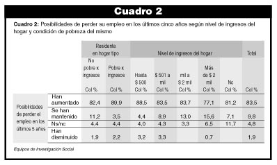 500 pesos, admitió el mismo temor en un 88,5 por ciento. Entre los 501 y