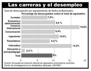 los índices de desempleo entre los universitarios. Comercio Internacional