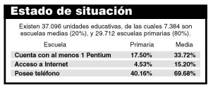 4 de cada 100 primarias y 15 de cada 100 secundarias están conectadas