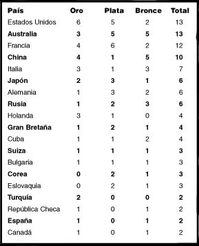 Esos tres partidos que nos quedan son dificilísimos reconoció Hugo Conte, el veterano de Seúl 88 en el equipo argentino, pero vamos a salir a jugarlos con todo. Respecto de la victoria de ayer, Conte reconoció que no se jugó bien, pero lo importante era ganar el partido más allá de la forma, porque éste contra Corea, igual que el de Estados Unidos, eran nuestros partidos-objetivo: sabíamos que había que ganarlos sí o sí para tener una chance de clasificación. Con esta victoria, se nos abre en un 80 por ciento esa posibilidad. Waldo Kantor, que lo miró desde afuera, acotó: En este partido se notó más la presión, porque Corea es un equipo a nuestra altura y estuvimos tensos, sin mostrar el mejor nivel. Kantor se permitió cierto optimismo ante los duros compromisos que se avecinan. Es cierto que ahora nos tocan Italia, Yugoslavia y Rusia, pero como ya nos sacamos la presión de encima, vamos a jugar más relajados. En otras disciplinas no le fue tan bien a la delegación argentina. El correntino Carlos Espínola mantiene el segundo lugar en la general de la clase Mistral del windsurf tras completarse tres regatas. En la madrugada de ayer fue octavo en la regata y quedó muy lejos en puntos del líder de la competencia, el austríaco Christoph Sieber, quien hasta el momento ganó dos regatas y fue segundo en la restante. Si bien al final de la competencia deberán descartarse dos de las once regatas, Espínola suma 19 puntos en contra en la clasificación general y el europeo sólo 4. En la clase Tornado, la pareja compuesta por Santiago Lange y Martín Parada clasificaron en el tercer puesto en la cuarta regata y se colocan en el noveno lugar. En judo, Sebastián Alquati fue eliminado en el repechaje de la categoría hasta 73 kilos en judo, al perder por waza-ari ante el estadounidense James Pedro. Alquati había superado en la vuelta inicial a Andre Payne, de Barbados, por ippon, pero fue a la zona de repechaje al caer en octavos de final con el surcoreano Jong Choi. El boxeo sigue recolectando derrotas para los argentinos en Sydney. Mariano Carrera perdió fácilmente en su presentación por 16 a 1 con el turco Akin Kakaurdze en la categoría hasta 75 kilos. La mayor envergadura y mejor técnica del boxeador turco se puso siempre de manifiesto sin que Cabrera pudiese hacer nada por evitarlo, tanto porque le faltaban condiciones físicas como porque no tenía una estrategia clara. Cabrera se convirtió en el tercer argentino eliminado en la primera ronda de los siete representantes que ha traído el equipo sudamericano a Sydney. Los primeros eliminados fueron Ceferino Labarda (54 kilos) y Guillermo Saputo (67 kilos). En remo, los botes argentinos de single scull comandados por Paola López y Sergio Fernández quedaron fuera de las semifinales de la categoría. Los argentinos debían finalizar sus repechajes en alguno de los dos primeros lugares, pero ambos terminaron terceros.