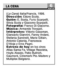 Hay chistes muy graciosos (“el único Lenin que ustedes conocen es John Lenin”, grita el cocinero ex PC a sus despolitizados ayudantes) y alguna escena reconfortante, como la de la vengadora femenina que ajusta cuentas con un patético seductor en el baño. Pero el conjunto suena a demasiado conocido, probado y reiterado, y la evidente fatiga cinematográfica de Scola no hace más que dejar las debilidades de la propuesta más a lavista. Hay demasiados personajes de relleno, mientras que otros son meras caricaturas: el contadorcillo acomplejado, el falso o verdadero hipnotizador, el grupo de ruidosos teenagers, la chica rodeada de novios. Ni qué hablar de los turistas japoneses que se la pasan sacando fotos. El sistema de cortes para ir de una mesa a otra no sólo resulta brusco y desprolijo, sino que además genera una permanente sensación de interrupción en cada historia. Es como si la imagen de Gassman, viejo, agotado e intentando simular una dignidad en fuga, fuera la de la película toda.