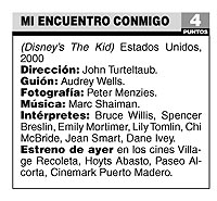 Premeditación y velocidad. Eso es lo que caracteriza a Mi encuentro conmigo, un opus Disney a la vieja usanza, estelarizado por el nuevamente ascendente Bruce Willis que, desde su aparición en Sexto sentido, ha regresado del limbo de las estrellas pasadas de Hollywood como no lo pudo hacer su personaje en el film. Fábula moral que narra el dickenseniano encuentro de un adulto engreído a punto de cumplir 40 años con su regordeta versión infantil de apenas 8 primaveras, el film de John Turteltaub es veloz a la hora de presentar sus personajes al endiablado ritmo –y con una música que de tan prepotente se hace insoportable– de un dibujo animado. Y es premeditado a la hora de ir construyendo su trama de subrayado en subrayado.