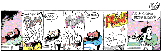 1 Los chistes adversos señalan la debilidad del poder. O –para ser más exactos– del gobierno, esa expresión política del poder que, en la Argentina, ha sido sometida a la expresión económica, la del establishment que realmente gobierna y que, durante estos días, se mantiene a la espera, observando qué cuernos hacen los políticos con el poder representativo que la democracia les concede. Los políticos hacen todo tipo de cosas. Pero uno de ellos –que es, nada menos, el Presidente de la nación– hace muy poco, lo que hace lo hace mal y, lo que aun es peor, lo que hace pareciera no ser él quien lo ha decidido. Así, le caben los chistes adversos.