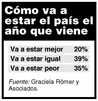 La gran mayoría piensa que el país y su situación personal van a estar peor o igual dentro de un año. Es una opinión muy pesimista y que muestra las pocas expectativas que tiene la población. Se evidencia que la gente no ve un horizonte, no cree que se está haciendo un sacrificio ahora, para estar bien más adelante. Estos datos revelan que el Gobierno no crea mística ni confianza en el futuro. |