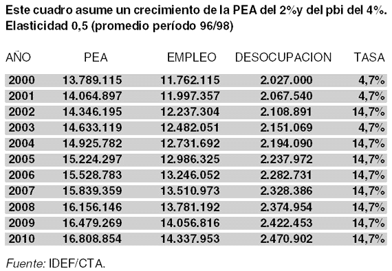 de desocupados de hoy, en 2010 habría dos millones y medio, como