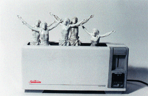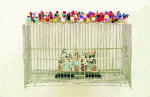 A propósito de Miguel Angel, una de las secciones más interesantes de la muestra alude a aquellos artistas que escenificaron las amenazas y los castigos a los desvíos de la fe. La lista comprende, entre otros notables, a Dante Alighieri, Miguel Angel, Giotto, el Bosco y Durero. Todos ellos aparecen acosados, en la propuesta boomerang de Ferrari, por las mismas amenazas del infierno que tan imaginativamente supieron plasmar. El interés de esta sección se prolonga en la posibilidad de un debate que Ferrari centra en torno de la ética en el arte. Muchos grandes artistas colaboraron con la Iglesia en exaltar este aspecto de la crueldad de la religión sobre el hombre. Y se justifican esos desvíos éticos con la coartada estética, porque es evidente que estamos hablando de artistas de enorme capacidad artística. Lejos de las coartadas estéticas, pero no sin humor, León Ferrari ha desembarcado en el ICI para cuestionar una vez más los caprichos de la fe, así en el Cielo como en la Tierra, pero sobre todo en la tierra.