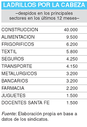 - El gremio más castigado fue el de la construcción, que perdió 40 mil puestos de trabajo y ya sufre una desocupación del 35 por ciento.