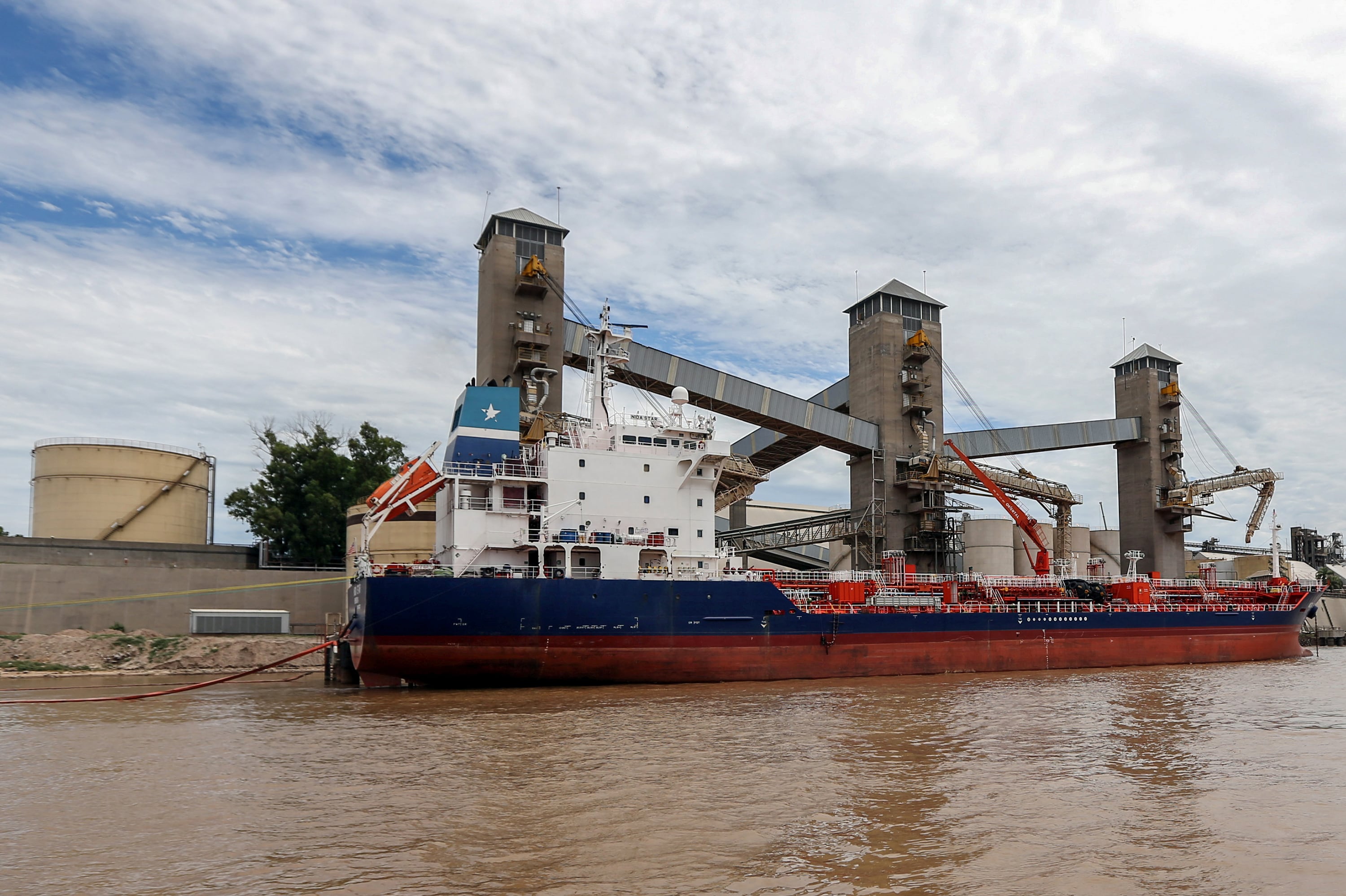 FOTO DE ARCHIVO: Granos son cargados a barcos en un puerto sobre el río Paraná cerca de Rosario (MARCOS BRINDICCI/REUTERS)