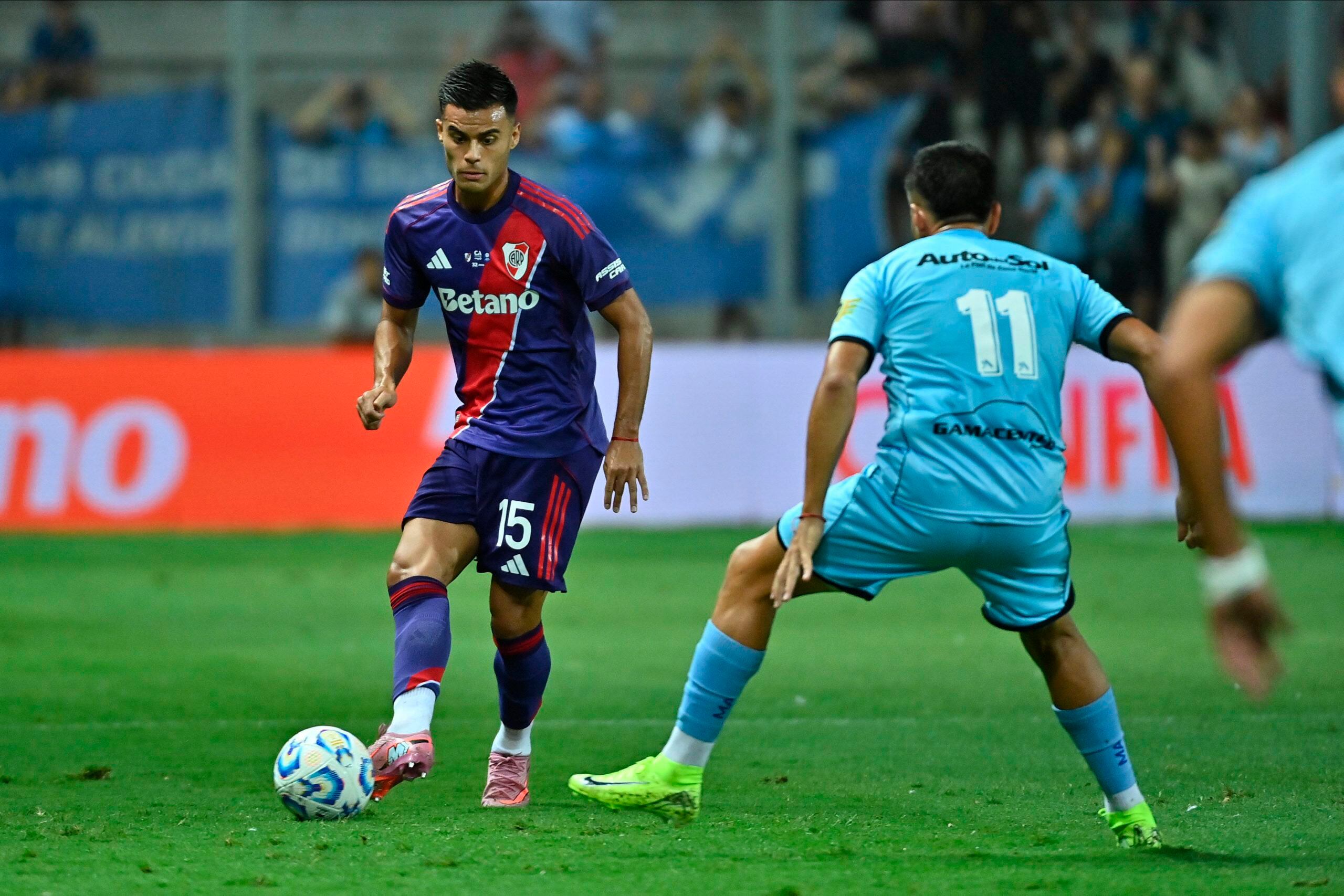 Vera lleva la pelota en la mitad de la cancha mientras lo espera Alex Díaz. (noticias argenti)