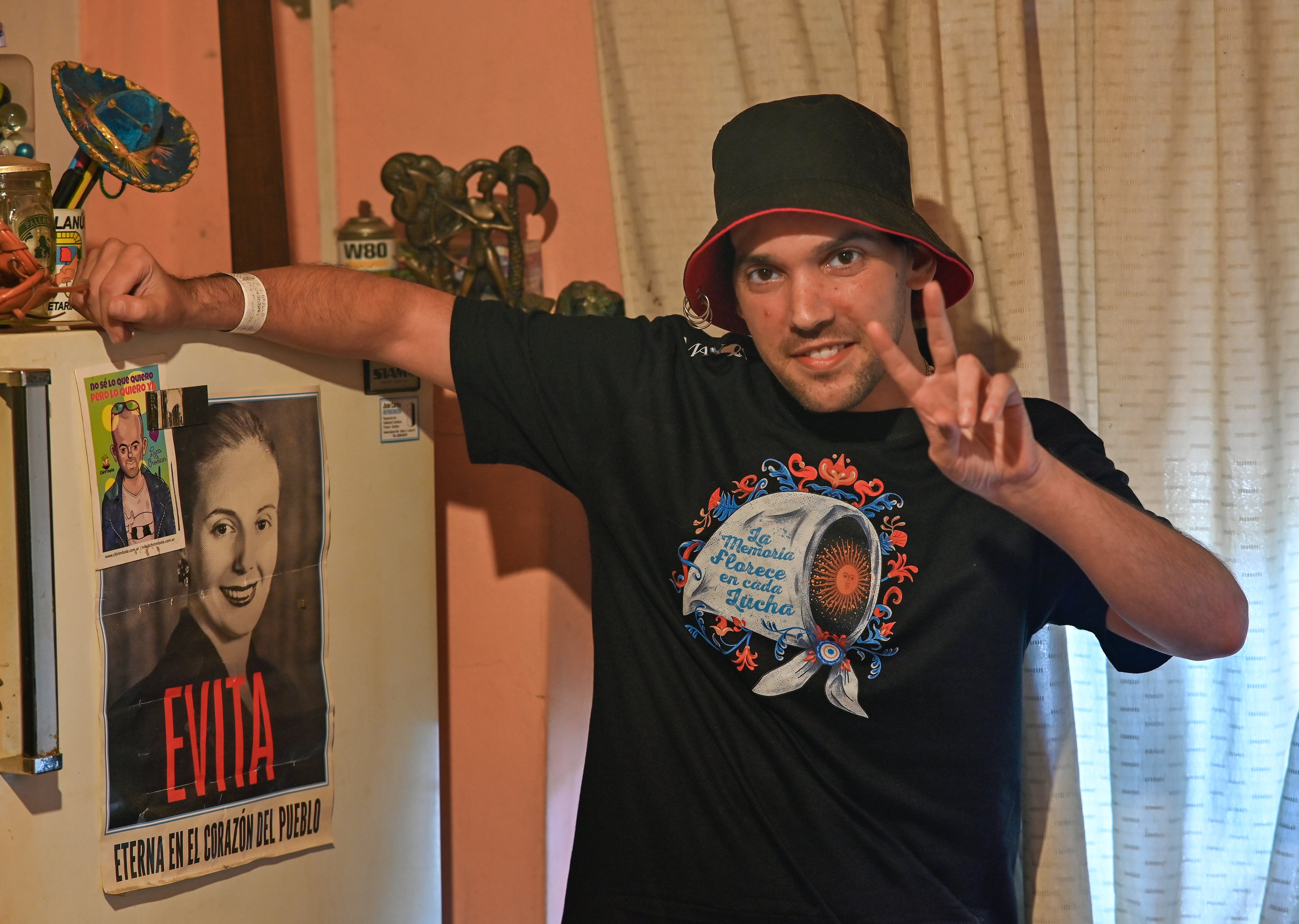 Una foto de Evita en la cocina. “Quiero festejar que al año de todo lo que pasó, la puedo contar desde casa”, dice Pablo. (keloian)