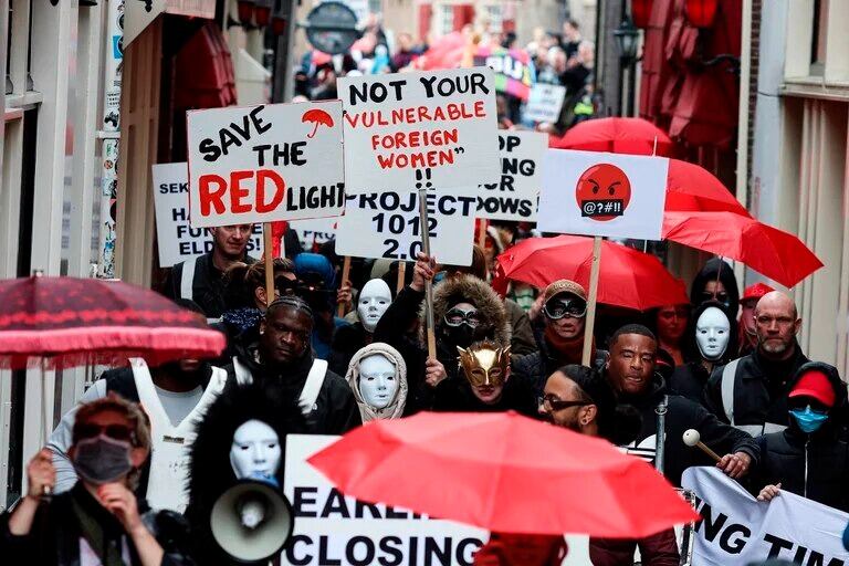 Trabajadores sexuales y vecines de Ámsterdam marcharon este jueves para protestar contra un proyecto del gobierno que propone desplazar la prostitución del famoso Barrio Rojo hacia un "ce