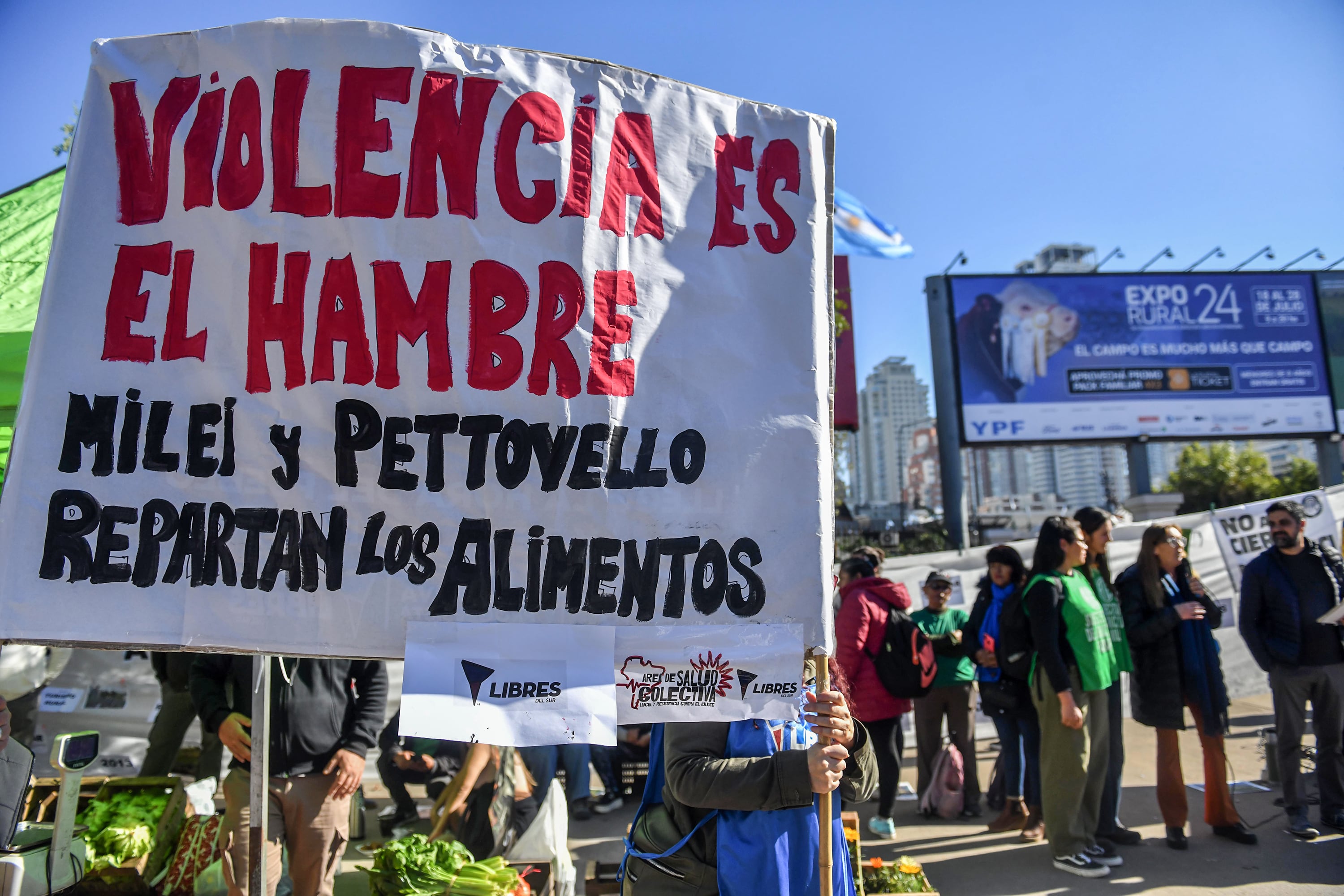 Con un feriazo frente al predio de la Exposición Rural, los trabajadores del Instituto de Agricultura Familiar -cerrado por el gobierno de Milei con 900 despidos-, junto a pequeños productores, mov