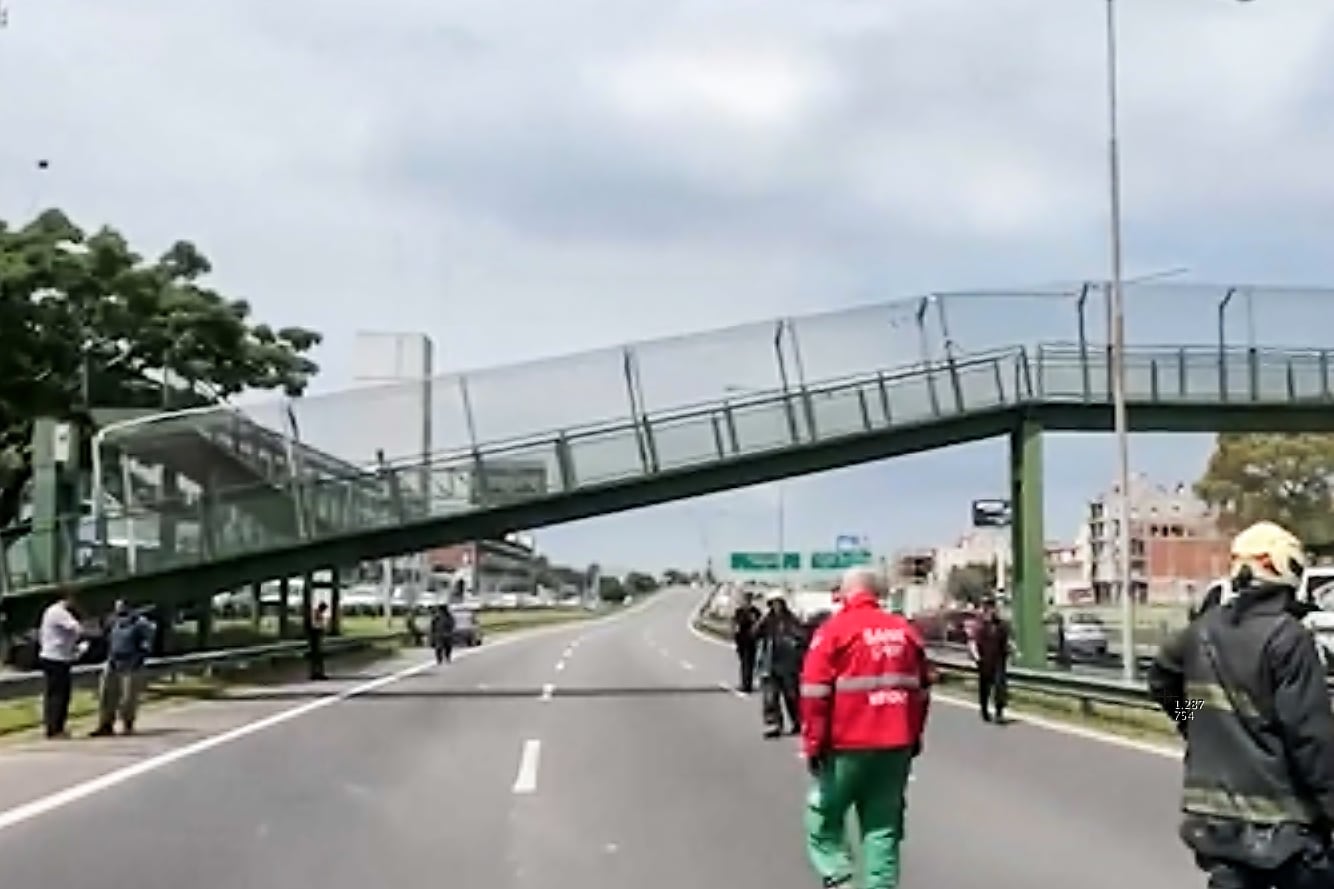 Un puente peatonal que atraviesa la avenida General Paz sentido al Riachuelo se derrumbó parcialmente este jueves, luego de que un camión con pluma mecánica chocara contra la e