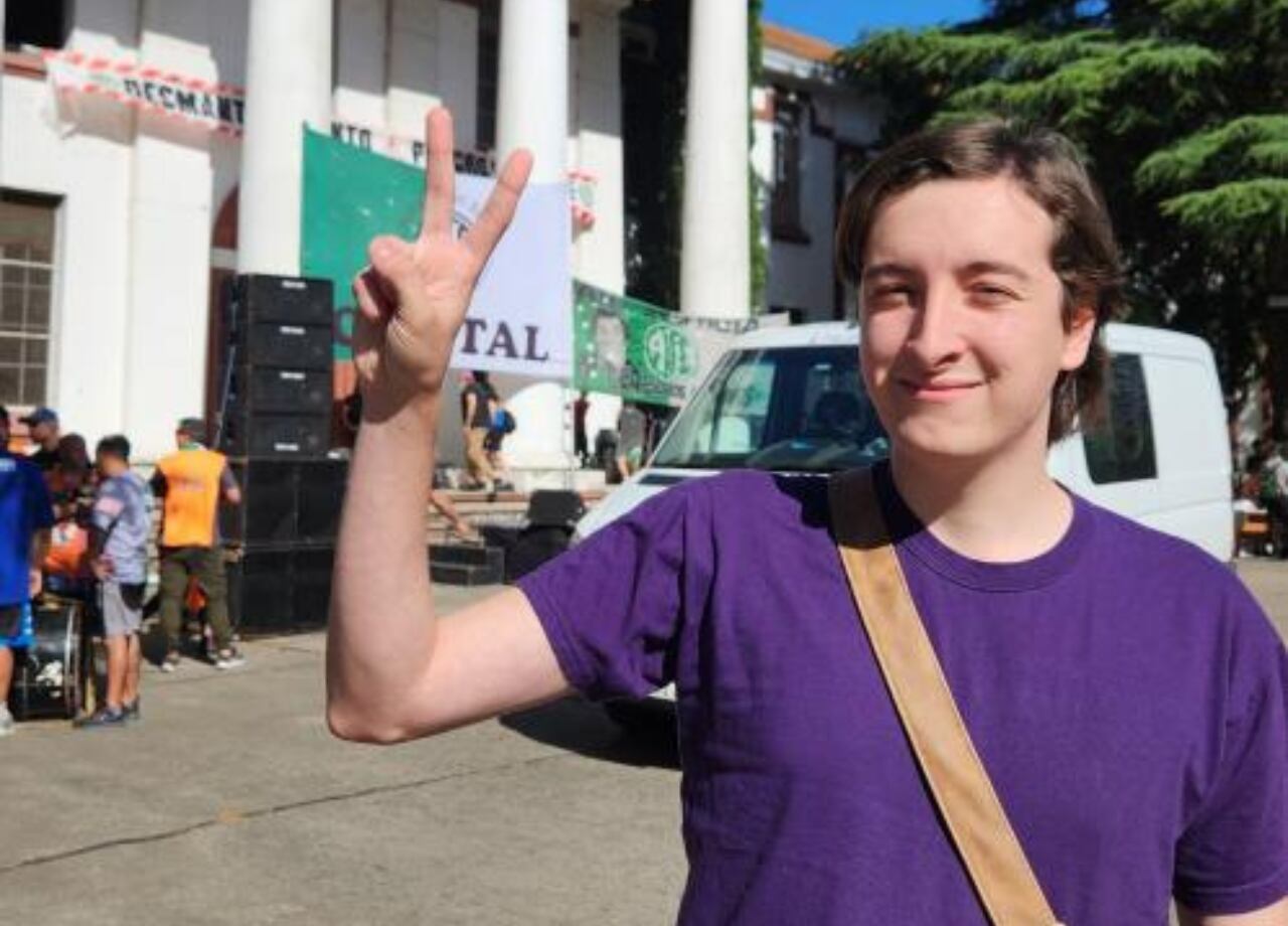 El joven militante participó de la movilización frente a la casa de Cristina Kirchner en el barrio de Constitución.
