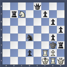 Alguna vez Maradona dijo “mi equipo es Mascherano y diez más”. El astro reconocía el sacrificio y la entrega como su valor principal, sin el cual, nada se podía ganar. Llevado al ajedrez, el juego es el siguiente: la consigna para la posición que se observa en el diagrama pide identificar los 14 mates del blanco y posteriormente ubicar una pieza negra – debemos averiguar cuál– que se despliegue con la energía de Mascherano y evita los 14 mates. La pieza que ingresa no puede entrar con jaque.