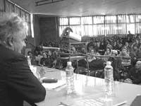 Disparó enérgicamente contra los docentes universitarios que “aspiran a formar discípulos en una estética de ‘abstracción lírica’, cuando su rol debe ser el de estimular la liberación del discurso propio de cada alumno”. Los alumnos asentían en silencio.