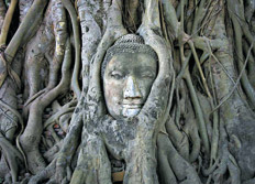 El camino para llegar es de tierra apisonada por los miles de peregrinos en ruta hacia la higuera sagrada donde medita el niño. En las ramas de los árboles hay un sinfín de ofrendas de colores, blanqueadas y arrugadas por el sol y el frío y la lluvia. Hay dos cercas de alambre en torno de la higuera y una caja para recibir donaciones y un cartel que dice “Bienvenidos, y por favor váyanse”. La fila de peregrinos da una vuelta perimetral a la cerca externa, pasa por la caja y emprende el descenso. La gente de GQ le ha conseguido un guía a Saunders, y éste le ha conseguido acceso hasta la primera cerca. Puede acercarse, puede incluso pasar la noche allí, junto a unos lamas que custodiarán durante la noche la meditación de Banjan. Ya está atardeciendo. Es difícil distinguir al niño del árbol. Está sentado en posición de loto, levemente inclinado hacia adelante, un brazo asoma de su túnica, la mano con el dedo anular curvado hacia adentro, como el buda. El pelo le cubre no sólo la frente sino que le llega casi hasta la boca.