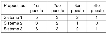 El sistema que pensó usted, ¿difiere mucho de los tres que aparecen en la Figura 2? Le propongo que se fije si más allá de los puntos que usted decidió que correspondería a cada posición, la diferencia relativa entre cada puesto se puede equiparar a alguno de los sistemas propuestos.