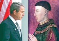 En mayo pasado, ocho devotos de Shakespeare debatieron, en el teatro de Washington que lleva su nombre, en torno a La vida del rey Enrique V del gran dramaturgo y poeta inglés (The Washington Post, 18-5-04). La obra fue probablemente escrita hacia 1598 y versa, como es notorio, sobre la invasión de Francia que el monarca británico ejecutó en el año 1415. Esto nada tendría de particular si no fuera porque W. Bush invadió Irak en el 2003. Los ocho panelistas no pudieron evitar analogías: el padre de Enrique V había sido rey, como el padre de Bush fue presidente; ambos, Harry y W., asumieron el poder dejando atrás una juventud de desvarío y francachela; los dos se creen en comunicación con Dios; ambos se rodean de consejeros que apoyan con entusiasmo sus respectivas invasiones, el mandatario estadounidense de neoconservadores –Dick Cheney, Donald Rumsfeld, Paul Wolfowitz et al–, el soberano del siglo XV del arzobispo de Canterbury, el obispo de Ely y otros “teoconservadores”, como los bautizara el periodista del New York Times David Brooks.