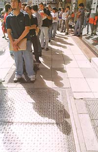 Por otro lado, la cola es, obviamente, el único lugar donde se puede protestar contra la cola y contra el mundo en general. Juega, en cierto sentido, un papel similar al del ágora ateniense, o al Hyde Park de Londres.