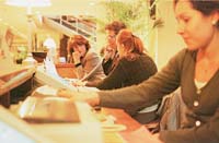 Tenemos que avizorar el mundo futuro. En estos días lo estuve observando en Berlín. Lo que nos espera. Paré en el hotel Park Inn. Treintisiete pisos. Centenares de pasajeros que vienen y van por el hall. Colas. Los ascensores que suben, suben y bajan, bajan, atestadas de cabezas con ojos que no saben a dónde van. Chinos, norteamericanos, japoneses, turistas europeos viejos que eligen octubre. Colas y colas para el desayuno. Aquí la taza de café, allá el pancito, por allá la manteca. Y suerte para encontrar un lugarcito en una mesa. El mundo futuro. La industria del turismo. Todo atendido por mujeres que limpian, que fregan, y algún hombre con ojo de guardián. ¿Todo esto como resultado de que por fin las mujeres les ganaron a los hombres? No. Que nos ganen en ternura y ambiente familiar. Junto a nuestras estufas, leyendo catálogos de flores y pájaros, en un hogar lleno de voces infantiles. Pero nada de ojos avizores de jefes de familia. Compartir con la caricia.