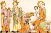 En ese sentido, el cuento de Navidad ha cristalizado no en relato adulto sino para chicos. Y es más redondo y acabado como estructura, responde a una única lógica más coherente: de las dificultades iniciales –la mala leche de Herodes, los problemas de hospedaje en la zona (también, cayeron justo para las Fiestas) y el parto que se adelanta– se llega al progresivo final feliz a toda orquesta con ingredientes muy seductores que no han dejado de ser eficaces hasta hoy. Antes que nada el Bebé, que curiosamente pasa a un segundo plano o funciona como pretexto para convocar elementos accesorios muy fuertes: la estrella orientadora, los oportunos animalitos solidarios y, sobre todo, el detalle increíble de los Reyes Magos, una idea maravillosa que incluye el “simpático negrito” tantas veces utilizado después.