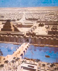 De todas las ciudades de la Mesopotamia, la más famosa y fuerte era Babilonia, de una magnificencia tal que eclipsaba la de cualquier ciudad de la que tengamos noticia. Situada en una gran llanura, forma un cuadro, cuyos lados tienen cada uno de frente ciento veinte estadios, (22 Km).