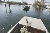 Acaban de volver de Bagdad, son unos 300 de la guardia nacional de Arkansas encargados de contener a quienes asaltan y saquean en Nueva Orleans, y las pocas diferencias que encuentran con los campos de batalla iraquíes es que hay mucha agua y la gente habla en inglés (The Washington Post, 6-9-05). Tienen licencia para matar, no se abstienen cuando son tiroteados o cuando advierten o les denuncian la presencia de pandillas armadas, y forman parte de los miles de efectivos, incluidos militares en servicio activo, que ocupan la ciudad devastada por Katrina. Deben padecer los mismos temores, rabias y cansancios que todavía traen de Irak, pero esta vez en tierra propia. Una repetición que descubre las entrañas del gobierno Bush.