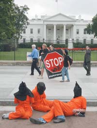 Tom Andrews, ex representante demócrata por Maine y director de Win Without War, señalaba en la concentración del 24-9 que “hay mucha gente aquí que se pregunta dónde están los demócratas”. En efecto, ese fin de semana toda la conducción del partido presuntamente opositor al gobierno desapareció de Washington, incluyendo a Howard Dean, su presidente, y a Hillary Clinton, tal vez porque consideran una “causa noble” la guerra en Irak. El actor Martin Sheen, que personifica al presidente Jeb Bartlet en la serie de televisión The West Wing, también es miembro de Win Without War. Participa en sus actividades, crea el espectáculo de un presidente de los EE.UU. criticando al presidente de EE.UU. y abre paso a la ficción en lo real.