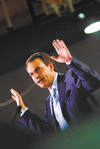 EROSION La enfermedad de los aviones se llama “fatiga de materiales” –cansancio de flotar, abruptas subidas y bajadas, erosión de nubes– y es la misma enfermedad de los presidentes o jefes de gobierno. Recientes encuestas –las encuestas también están hechas de aire, de brisa invisible que arrasa y arrastra– aseguran que Zapatero cae y que Rajoy sube. Que el PSOE aterriza y el PP despega. No es tan así; pero lo cierto es que con poco más de año y medio volando, Zapatero experimenta turbulencias y se ajusta el cinturón y ya se ha anunciado que su “talante” mutará a “núcleo duro” o “nueva etapa” para “recuperar confianza”. Para empezar, ha acusado al PP de propagar “pura bazofia informativa” y...