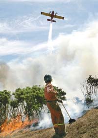 FUEGO El fuego que –con la ayuda de pirómanos nocturnos que de día trabajan de bomberos– arrasó miles de hectáreas de Galicia. El PP y el PSOE no se ponen de acuerdo en la cantidad exacta de hectáreas. El PP y el PSOE nunca están de acuerdo en nada; pero supongo que es mejor que los rivales políticos estén en partidos diferentes en lugar de en el mismo partido. Cuestión de higiene, digamos. Una cosa sí es segura: Günter Grass no tuvo nada que ver, porque por esas fechas se lo vio en Dinamarca. Eso sí: se está estudiando su posible participación en el incendio del edificio del Reichstag del 27 de febrero de 1933. Y, sí: hubo un tiempo en que el fuego no existía aunque ya estaba. Algunos mitos explican que fue un mortal quien se lo robó a las divinidades de turno y que pagó cara su osadía. Es decir: el hombre no inventó el fuego, tan sólo se limita a encenderlo en momentos casi siempre inoportunos. Ejemplo de receta para hacer fuego: tómese una piedra de Israel y otra piedra del Líbano. Golpéeselas con fuerza, una contra otra, hasta que salte una chispa. No hace falta golpearlas durante mucho tiempo o muchas veces. Enseguida salta y quema y se abre el fuego.