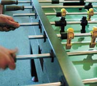 El metegol está en el medio del living, ha desplazado algunos muebles más decorativos pero menos funcionales y es escala habitual de las visitas adolescentes y de veteranos más o menos avezados. Metegol al paso, digamos. Pero por supuesto que para reuniones colectivas se arman ocasionales torneos relámpago con escueto reglamento que prohíbe el molinete y los desplazamientos bruscos de la mesa, hay gritos y desafíos, diestros y chambones, como siempre. El efecto cuasi hipnótico de la mesa que remeda el fútbol a escala sigue siendo el mismo desde que me acuerdo. Incluso es mayor ahora, cuando el estado actual de la guerra de los sexos ha elegido el territorio futbolero como zona de complicidad, no de conflicto. Las chicas hoy juegan con naturalidad al metegol junto a los varones.
