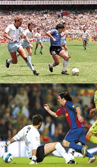 Cuando –ya famosamente– el joven Lionel Messi realizó en el Camp Nou del Barcelona FC, durante el crepúsculo boreal del miércoles 18 de abril, para disfrute y consumo urbi et orbe, la maniobra prolongada en tiempo y espacio que culminó en el segundo gol de su equipo contra el Getafe, hubo consenso unánime e inmediato de que se trataba de un hecho prodigioso y, paradójicamente, comparable: el pibe había hecho un gol igual al de Maradona contra los ingleses en el Mundial ’86.