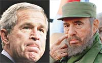 Siguiendo el curso tórpido de sus groseras mentiras, podemos preguntarnos: ¿por qué Bush puso en libertad a un terrorista famoso y confeso como Posada Carriles el mismo día en que se conmemoraba el 45 aniversario de la derrota imperialista en Girón? Peor aún, ¿acaso le dolerá un ápice la injusticia de mantener presos, algunos hasta con dos cadenas perpetuas, a cinco héroes cubanos que informaban a su patria sobre planes terroristas? ¡Prohibido pensar que Bush ignoraba quién financió los incontables planes de asesinato contra Castro!