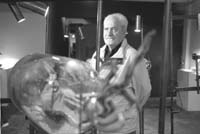 Así como un barco lo trajo a Buenos Aires en 1949, fueron los barcos de las botellas los que lo “arrimaron” a la ciudad: empezó con muelles y dársenas para amarrarlos, y ahí nomás las construcciones: Puerto Madero, el Club de Pescadores, el Riachuelo y La Boca. “Ir metiéndome en la ciudad y relacionarla con consignas políticas me generó un entusiasmo muy grande”, dice, y va enumerando todo lo que planea embotellar: la ESMA, el edificio del Banco de Boston, el Congreso y la propia IMPA. En botellas de los más diversos tamaños, tapadas con raíces de árbol, Ceciaga Cortázar ya metió al Cabildo, la Facultad de Derecho (junto al puente que cruza Figueroa Alcorta), el edificio de la Embajada de Francia, el Café del Tiempo, una glorieta y una fuente de Barrancas de Belgrano y Caminito. “La forma de cada botella sugiere un paisaje determinado”, dice, y cuenta que procura conseguir envases originales: la Casa Rosada, por ejemplo, está dentro de la carcaza de vidrio de una extraña lámpara que alguna vez iluminó el Gasómetro, la vieja cancha de San Lorenzo.
