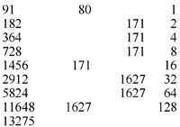 El método consiste en fabricar cuatro columnas de números a partir de los dos números que uno tiene como datos.
