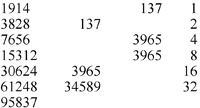 Como 3965 es menor que 15312 y que 7656, lo escribí dos veces en la tercera columna.