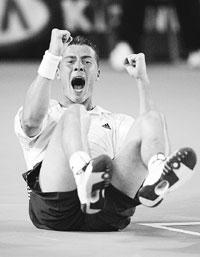El ruso Marat Safin sigue de racha con Pete Sampras. Esta vez debió sufrir un poco más, pero volvió a ser superior al estadounidense, a quien dejó afuera del Abierto de Australia en octavos de final, derrotándolo por 6-2, 6-4, 6-7 (5-7) y 7-6 (10-8). En tres horas y 33 minutos de gran tenis, Safin condenó de nuevo a Sampras a la derrota, tal como había hecho en la final del US Open de 2001, cuando el americano cedió en tres sets y admitió que el ruso le había recordado sus comienzos. Por otra parte, en el cuadro masculino de juveniles, el argentino Brian Dabul, máximo favorito, inició exitosamente su camino hacia el título, al derrotar 6-4 y 7-5 al japonés Go Soeda en primera ronda.