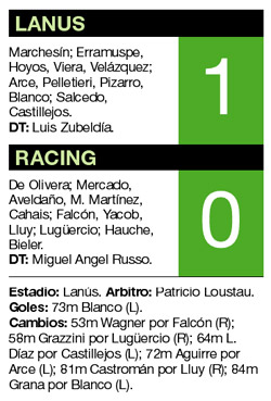 Racing sigue en su laberinto y cada vez más preocupado con el descenso, cuando sólo restan nueve fechas para el final. Con otra pobre actuación, el conjunto de Miguel Russo cayó 1-0 ante Lanús, por lo que en esta fecha seguirá hundido en la zona de promoción, e incluso puede ser superado por Gimnasia. Con practicidad y algunos ratos de buen juego, el equipo de Zubeldía justificó una victoria que le sirve para salir de los últimos lugares, a la espera del encuentro clave ante Blooming por la Copa Libertadores.