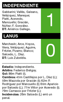 Después del duro traspié que padeció en La Paternal el domingo pasado, Independiente se pudo recuperar y derrotó ayer 1-0 a Lanús. A pesar de no ofrecer un juego para el elogio, al equipo le alcanzó para terminar el torneo con una alegría.