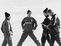 Garcé se mostró muy recuperado de una leve dolencia muscular, en tanto Ameli hizo trabajo diferenciado por una lumbalgia que, salvo que se agrave, no le impedirá jugar el clásico de la decimoquinta fecha del torneo Clausura. En la práctica de fútbol, los titulares vencieron a los suplentes con dos golazos de Fernando Cavenaghi.