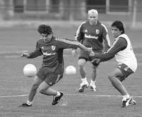 En el plano futbolístico, Pellegrini ordenó ayer un ensayo de fútbol informal entre dos equipos, en los que alternó a los potenciales titulares y suplentes. En un conjunto estuvieron Lux; Ahumada, Ayala, Tula, Zapata; Coudet, Mascherano, Raponi, Montenegro; Domínguez (luego Gastón Fernández) y Salas. En el otro jugaron Costanzo; Franco, Rojas (también podría ir a Talleres), Crosa, Virviescas; Barrado, Pereyra, González; Ludueña; D. Husain y Cavenaghi. El triunfo fue para estos últimos por 2-1, con dos goles de Darío Husain, mientras Rojas en contra había marcado para los perdedores. Se confirmó ayer que River jugará un amistoso con el Real Madrid el próximo 23 de setiembre para homenajear a Alfredo Di Stéfano.