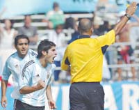 En fútbol, los 40 grados de temperatura a la hora del encuentro afectó la dinámica de ambos equipos, que en la primera media hora fueron deslucidos en el ataque, y se repartieron desaciertos sin inquietar en el área rival. Como sucedió en el debut ante Paraguay, la clave para el ataque argentino volvió a ser Cángele, quien anotó su segundo gol en el torneo con una escapada por la derecha y definió con un zurdazo alto. Más tarde, en uno de los contraataques que tuvo Argentina, Alonso definió con un disparo de derecha desde afuera del área y estiró la ventaja para definir el encuentro.