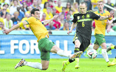 Andrés Iniesta repartió asistencias en la despedida de España del Mundial, en lo que fue su centésimo partido con la selección roja, que terminó con un categórico 3-0 ante el voluntarioso equipo de Australia. Dos de esos tres goles del campeón del mundo en salida, que incluyó unos cuantos nombres poco habituales en su alineación, vinieron tras espectaculares pases entre líneas del fenomenal futbolista del Barcelona.