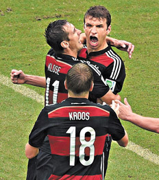 Müller, por su parte, destacó que su equipo ha mostrado ambición y eso los puede “llevar lejos” en Brasil 2014. “Me siento muy bien. Ha sido un buen partido y he marcado. Estoy feliz de jugar en este equipo, que es muy ambicioso, y esa ambición nos puede llevar muy lejos”, destacó el goleador del Bayern Munich. “Empezamos muy bien y enseguida nos adueñamos del partido. Bastian Schweinsteiger hizo un gran juego”, remarcó el atacante alemán. Müller relató que su gol fue “un disparo desde la esquina del área. Vi que no había ningún oponente. Al principio mis compañeros no vieron que estaba solo, pero después del remate de cabeza la pelota me llegó. Me concentré y me salió un buen tiro. Eso fue todo”.